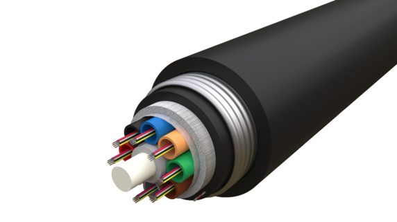 Fiberoptisk kabel för förläggning direkt i mark. Den har en korrugerad stålarmering samt en extra PE mantel som skydd mot hög tryckpåverkan. Kabeln innehåller 24 eller 96 st löst sekundärskyddade fibrer. De primärskyddade fibrerna är placerade 12 och 12 i 1,7mm gelfyllda PBT (Polybutylene Terephthalate) tuber som i sin tur läggs runt en central dragavlastare (FRP).