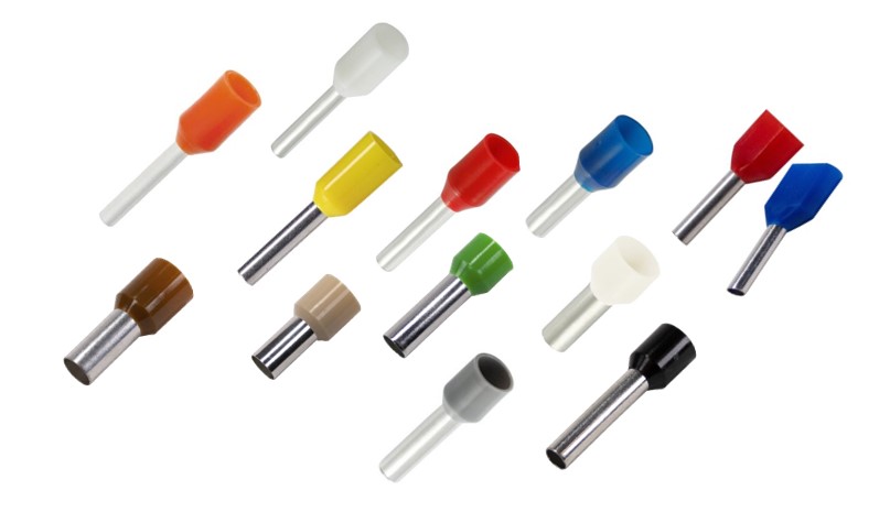 De isolerade ändhylsorna är färgkodade för att indikera vilket ledartvärsnitt de är lämpliga för, vilket gör det enkelt att identifiera rätt storlek för en specifik installation.