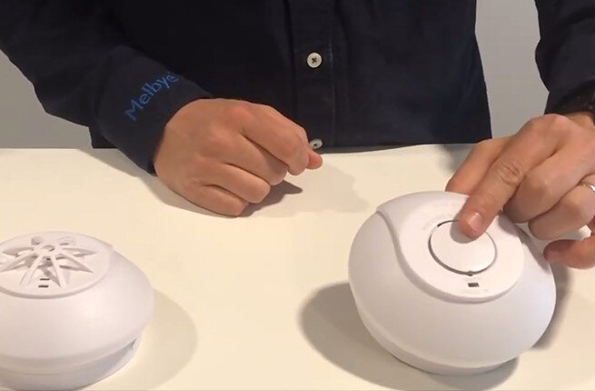 Alla Melbyes brandvarnare är utrustade med en praktisk testknapp framtill på enheten. Håll in knappen tills alla enheter ger ifrån sig ljud. Detta innebär att brandvarnaren fungerar som de ska.