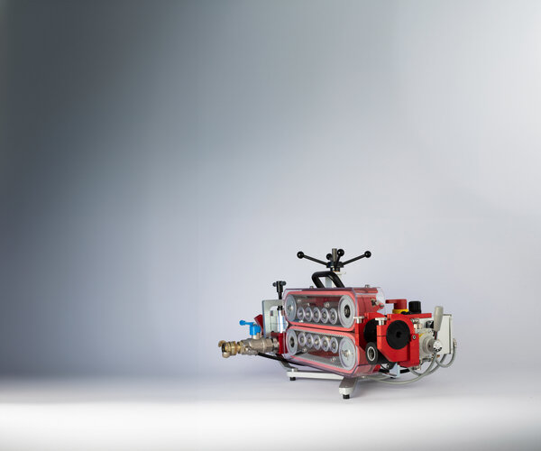 ”En kul grej är att vi har gjort om en Volkswagen Crafter och byggt till ett luftsystem så att vi kan ha en m17-kompressor med oss (en mindre kompressor för mindre slangar). När det kommer till 25, 32, 40 PEM-slang som sväljer mer luft behöver man en större kompressor som behöver dras med vagn och bil. Då byggde vi bilen och ställde kompressorn där och sedan en el-kompressor med ett luftsystem som driver luftmotorn i V2:an. Detta gör att vi kan blåsa 400-500 meter utan att behöva ha med den största kompressorn.”