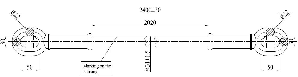 Märkspänning 72,5 kV Material Kompositmaterial Längd 2 400 mm Diameter 31 mm Vikt 8,2 kg Krypsträcka 2 020 mm Gaffelöppning 30 mm - Varianter