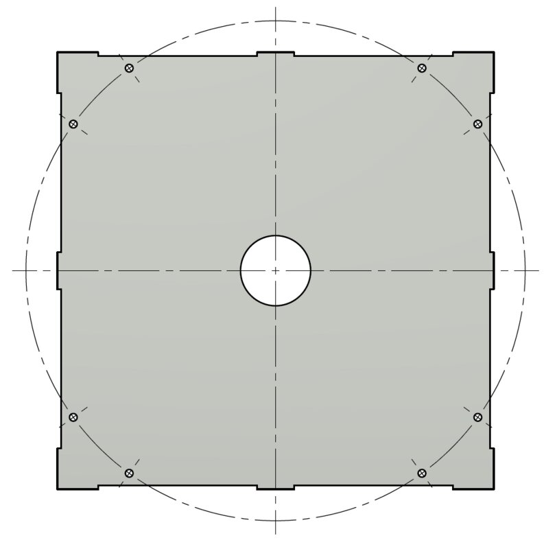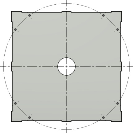 Adapterplatta till E-fundament 600x600mm. Utan hålbild centrumhål 110Ø