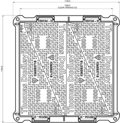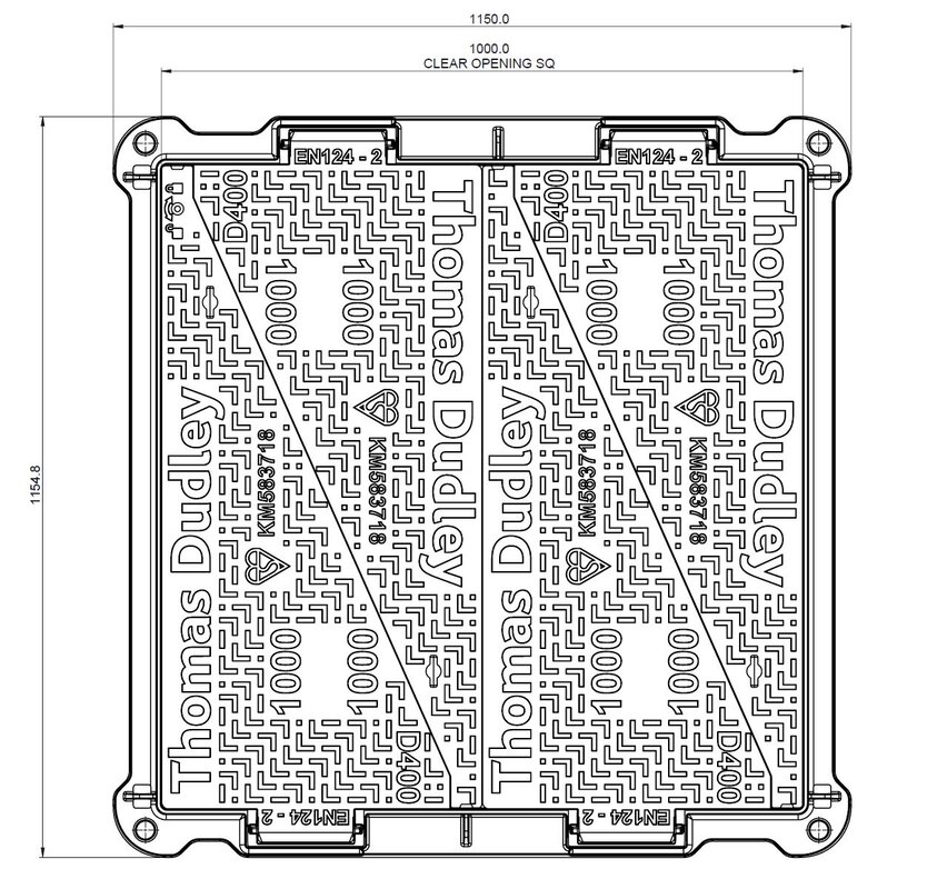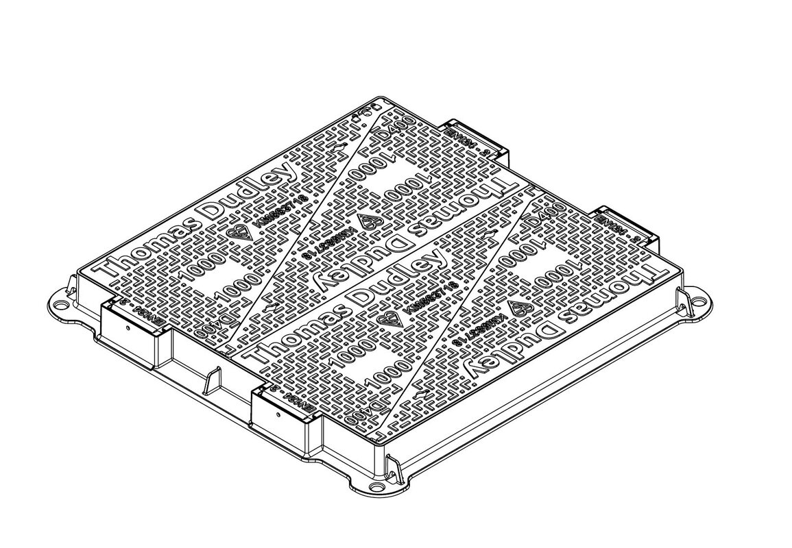 Gjutjärnslock D400 UC1000x1000 4-delat Gångjärn, 100mm