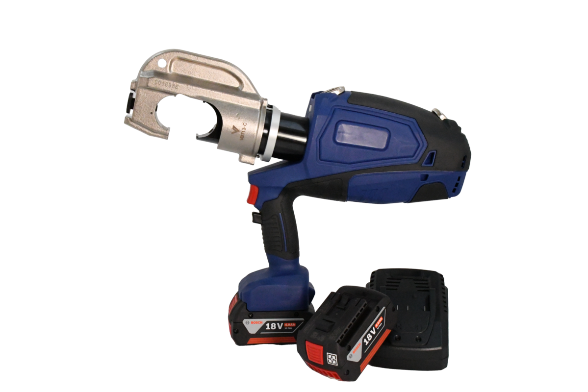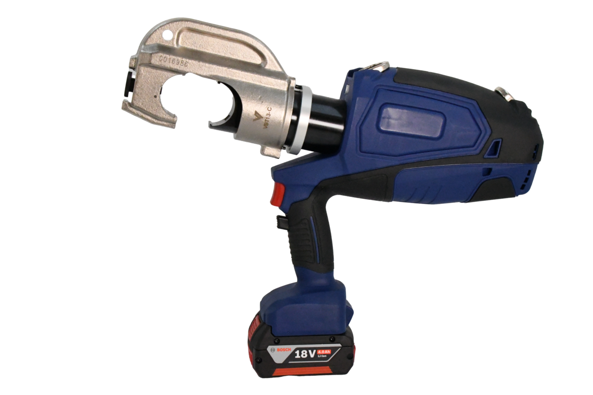 VBT13-C är en borstlös hydraulisk batteripress för pressning av kopparkabelskor, skarvhylsor och C-press.