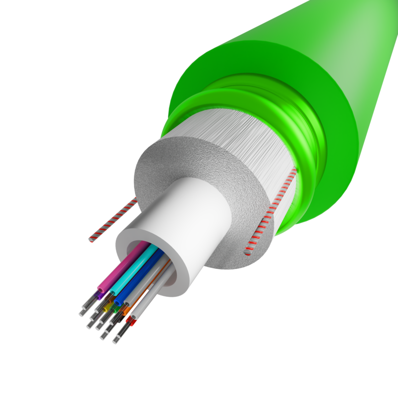 Fiberoptiska funktionssäkra (brandsäkra) kablar konstruerad för att fungera minst 90 minuter vid bränder upp till 750°C. Anpassade för installation inomhus och/eller utomhus i kanalisation. Halogenfria, CPR- och brandklassade för att möte de krav som ställs på installationer inomhus. Konstruktionen med korrugerad stålarmering gör kabeln 100% gnagarsäker.