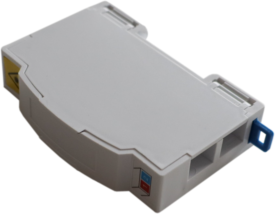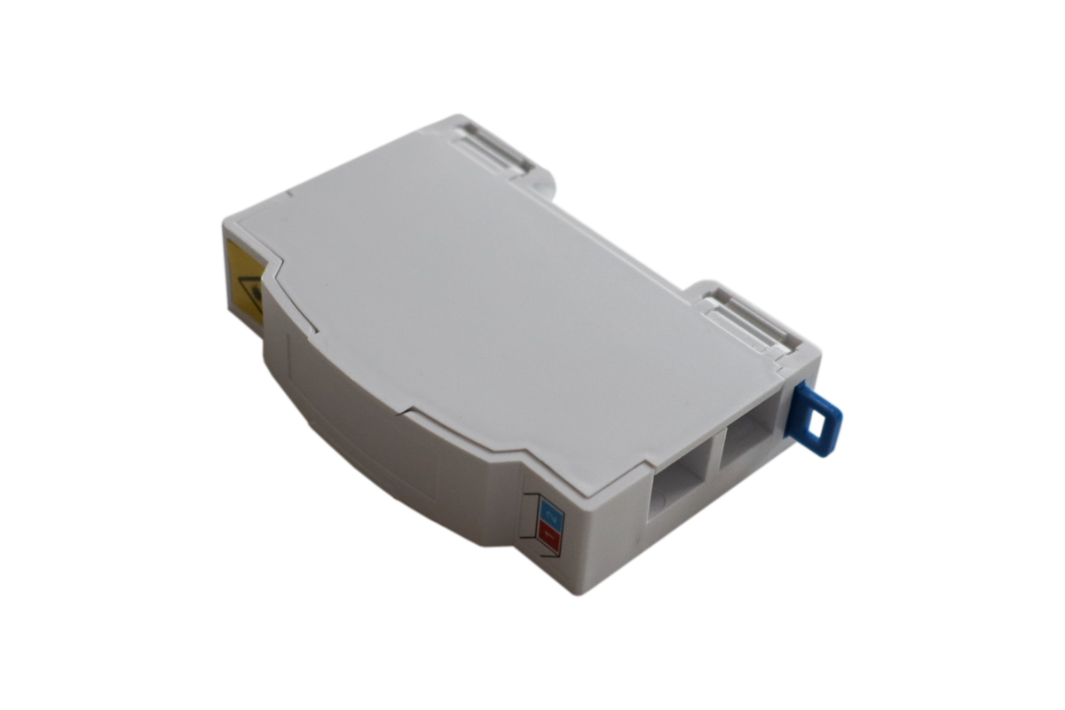 Fiberuttag 2x SCS/LCD (G657) för montage på DIN-skena i normcentral och mediacentral. Upptar en modulplats 17.5mm. Passar kabel med ytterdiameter 2-4mm.