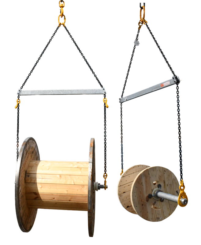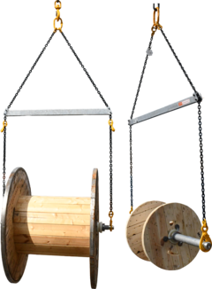 Levereras med nylonkoner för håldiametrar: Ø75, Ø105 och Ø135 mm, samt låsringar. Levereras även med reduceringskrokar så att man kan minska kedjans längd vid lyftning av mindre trummor.
