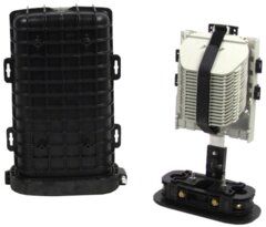 Skarvboxar för installation i fiberoptiska telekommunikationsnät. Vattentäta enligt IP68 som används för att skarva traditionella kablar, ADSS-kablar och mikrokablar under jord, direkt nedgrävda, i brunnar eller i luft. Boxarna kan monteras på stolpe, vägg eller wire. Could be customized with pre-installed accessories according to customers specific needs.