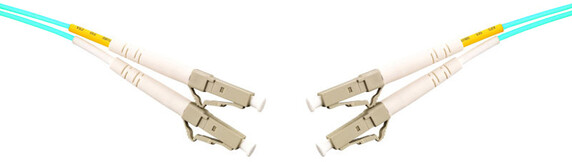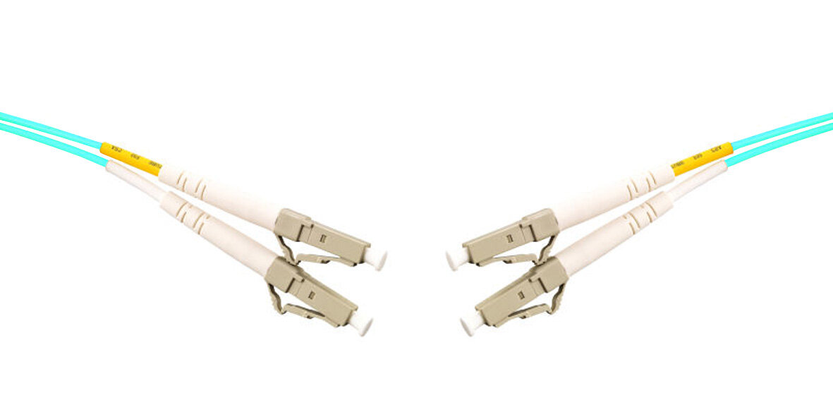 Fiberoptiskt korskopplingskablage multimode OM3-300 50/125µm med turkos 2mm duplex kabel. Halogenfria enligt EN 60754-1/2 och flamskyddade enligt IEC 60332-2-2 och IEC 60332-3-24. Uppfyller kraven i IEC 61300 och TELCORDIA GR-326-CORE.