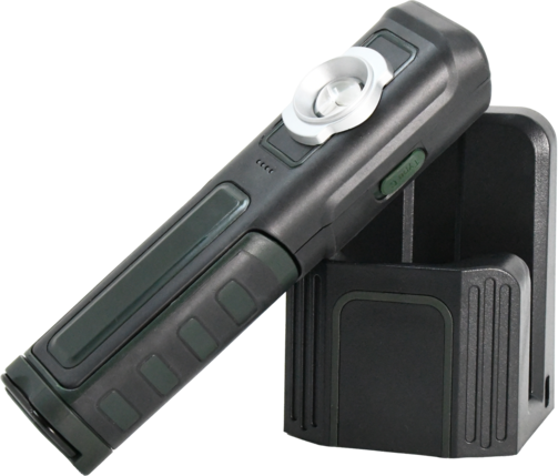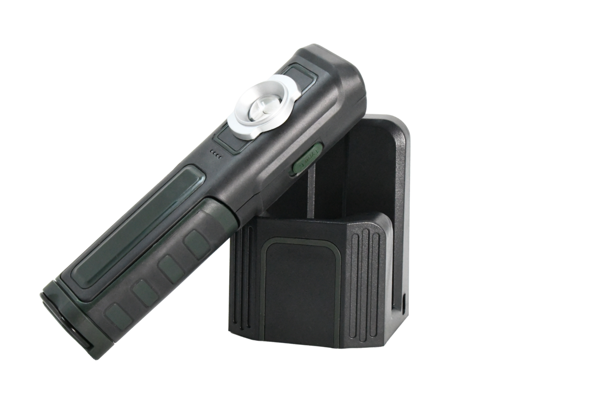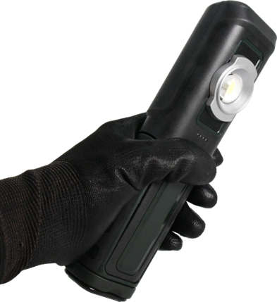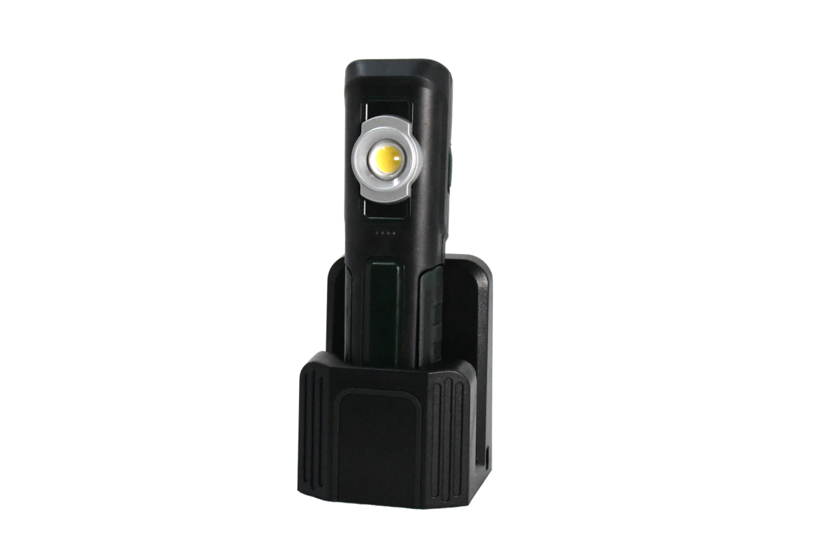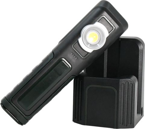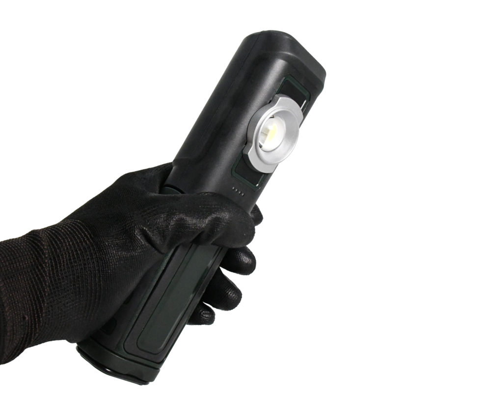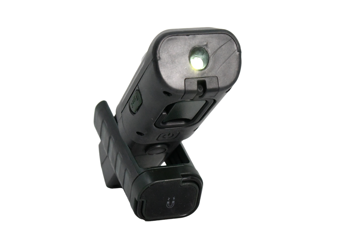 Med inbyggda magneter på lampans baksida och i fotens botten kan lampan fästas på magnetiska ytor för bästa möjliga ljusbild över arbetsområdet.