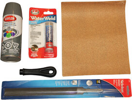 Innehåller polyuretan spray för målning, epoxy tätningsmassa, fil och sandpapper