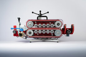 Robust och kraftfull, pneumatiskt driven fiberblåsmaskin designad för enkla kablar och för omfodring av flera mikrodukter. Konfiguration kan göras för kabel mellan 4 och 40 mm och duktdimensioner mellan 10 och 63 mm. Den unika Joystick-kontrollen och de smidiga motorerna säkerställer en optimal kontroll av installationen. Med en anodiserad aluminiumkonstruktion är maskinen lätt men ändå väldigt stark. Förberedd för JetLogger dokumentationssystem.